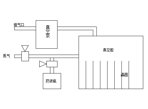 Una, naka-on ang vacuum pump upang simulan ang pag-vacuum. Kapag naabot na ng antas ng vacuum sa silid ang itinakdang halaga (maaaring itakda ang halagang ito sa pamamagitan ng pagpapalit ng halaga ng P2 sa vacuum gauge, tingnan ang manual ng vacuum gauge), ipinakilala ang nitrogen. Matapos maabot ang itinakdang antas ng vacuum (maaaring itakda ang halagang ito sa pamamagitan ng pagpapalit ng halaga ng P1 sa vacuum gauge), ang proseso ng pagpapakilala ng vacuum at nitrogen ay paulit-ulit. Matapos maabot ang itinakdang bilang ng mga pagpapakilala ng nitrogen, magsisimula muli ang pag-vacuum, na sinusundan ng pagpapakilala ng solusyon ng kemikal. Pagkatapos ng itinakdang oras, hihinto ang pagpapakilala ng solusyon sa kemikal, at magsisimula ang yugto ng paghawak. Pagkatapos ng itinakdang oras ng paghawak, magsisimula muli ang vacuuming at nitrogen introduction, para sa itinakdang bilang ng mga cycle. Kapag ang system ay awtomatikong nakumpleto ang proseso, isang naririnig at nakikitang alarma ang ibibigay, na nagpapahiwatig na ang mga wafer ay handa nang alisin.